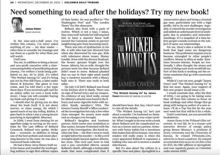 James Owen wrote an article for the Columbia Daily Tribune about his debut book The Wicked Among Us (Post Hill Press).